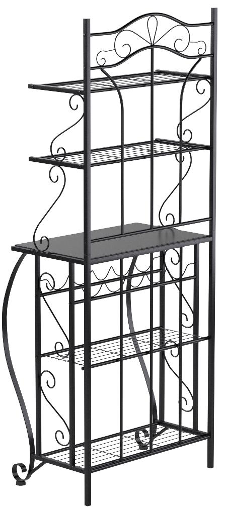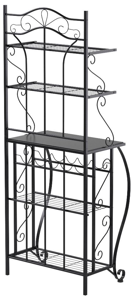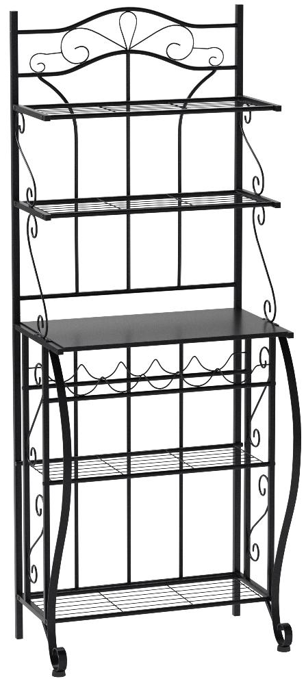 5 Tier Black Metal Cappuccino Finish Shelf Kitchen Bakers Rack Scroll Design With 5 Bottles Wine Storage Amazon Ca Home