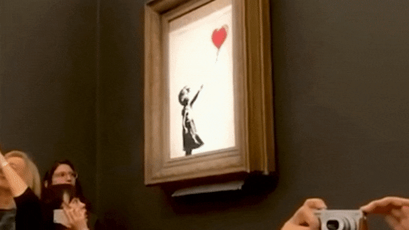 Banksy Self Destructs Painting Moments After Its 1 4 Million Auction Rolling Stone